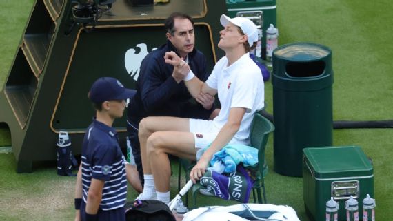 El tratamiento se centró específicamente en su codo derecho, zona que claramente había absorbido el impacto de la caída. Las muecas de Sinner mientras el profesional manipulaba la articulación fueron una señal clara de que las molestias persistían. Aun así, el italiano optó por seguir en competencia, luego de una breve conversación con el médico y casi cuatro minutos de atención.